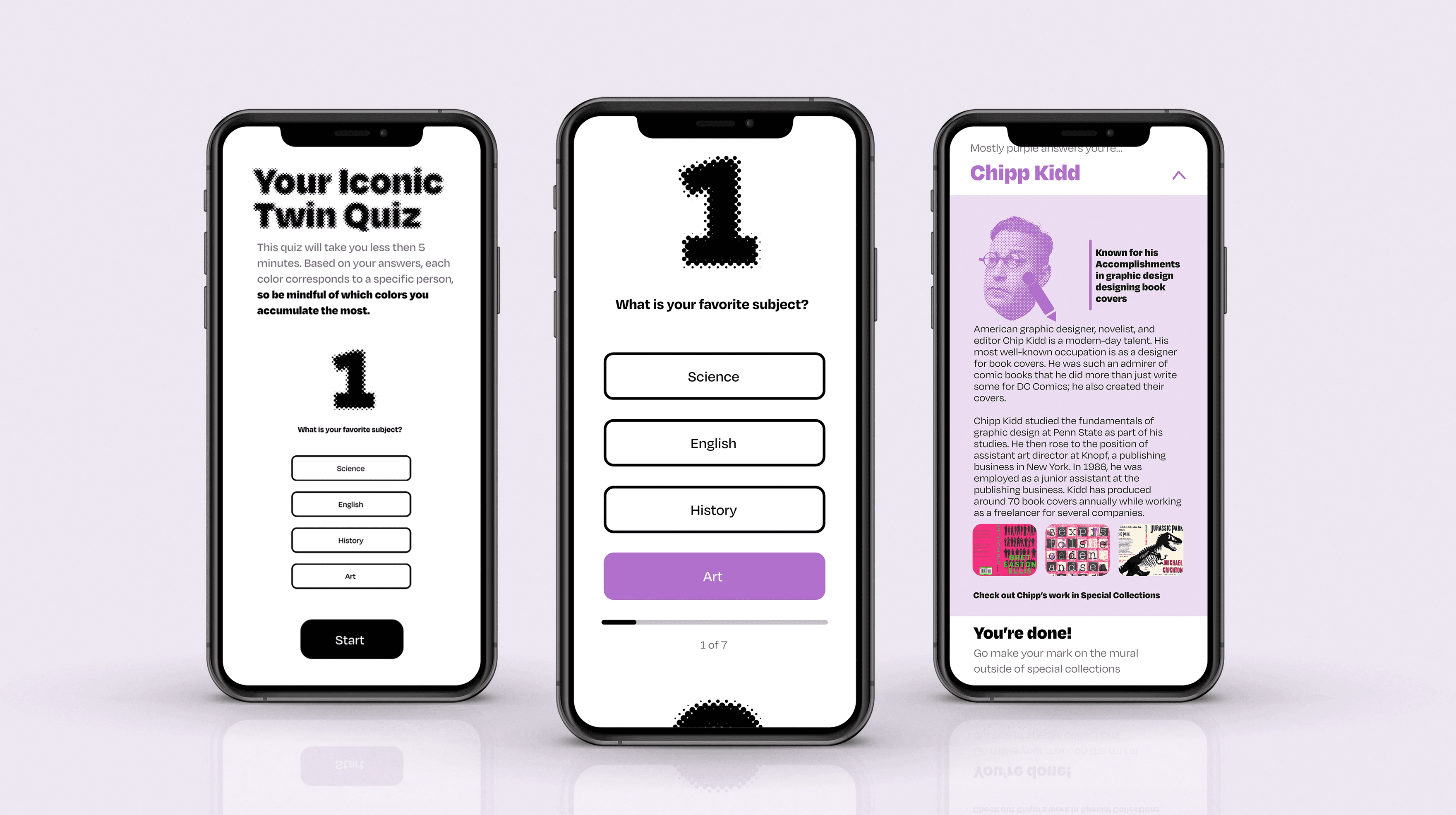 Our group conducted site studies and research to gain a deeper understanding of the alumni we selected for our project. We were fortunate enough to look through the archives of these amazing history makers' work. Chip Kidd actually commented on one of our posts, which was insane to us!